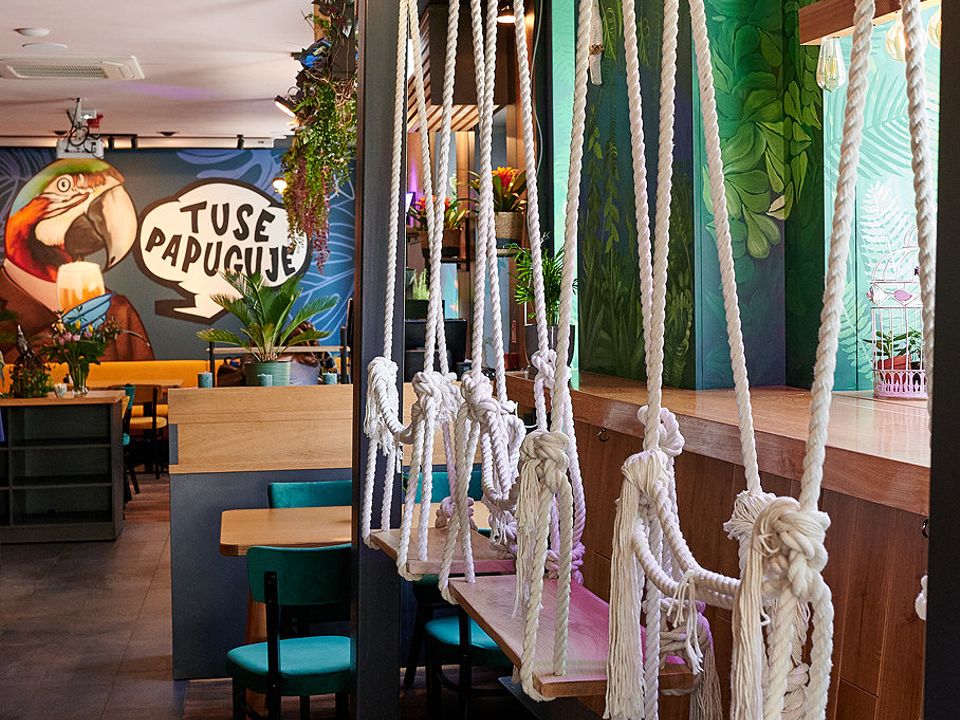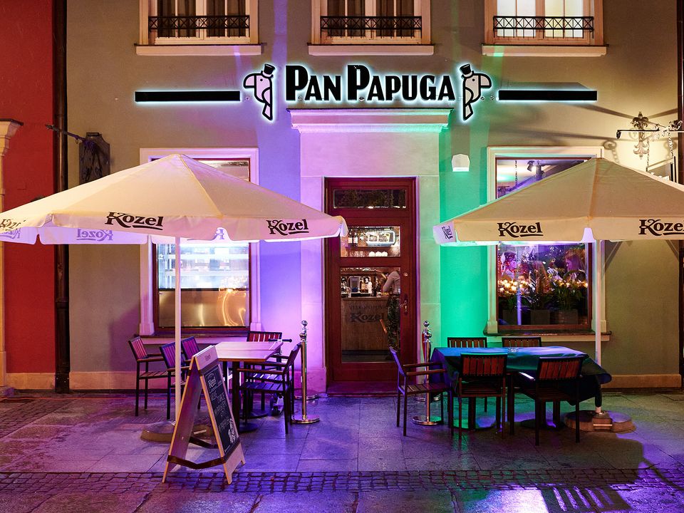 Känn dig välkommen att besöka oss i atmosfären i en varm djungel. Här, på Długa 81-83 Street, bland växternas dekorationer och överflöd, kan du känna dig som på en semester. Lämplig musik och trevlig service kommer att uppfylla resten. Det viktigaste elementet i atmosfären i "Pan Papuga" är Comfort European Cuisine: Typiska rätter i nya arrangemang såväl som författare, tropiska drycker, traditionell tjeckisk öl och ett regelbundet förnyat erbjudande av raffinerade desserter från våra egna konfektyr.